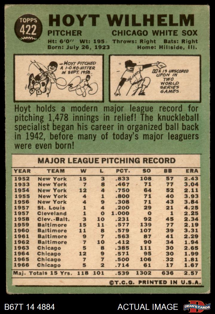 1967 Topps #422 Hoyt Wilhelm 2 - GOOD