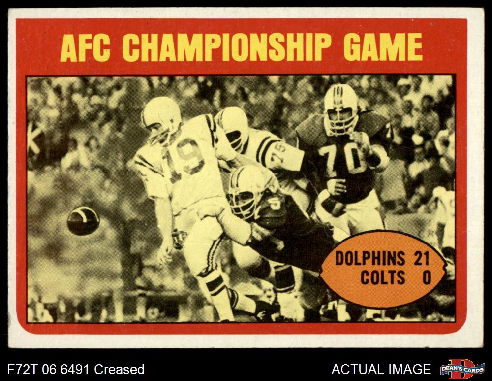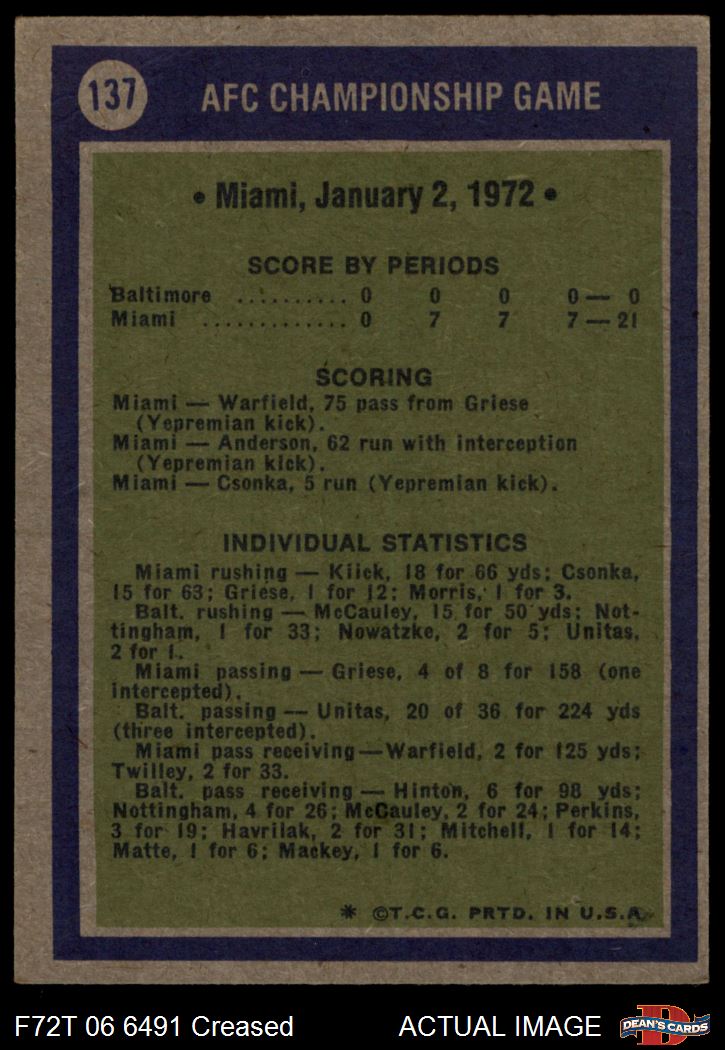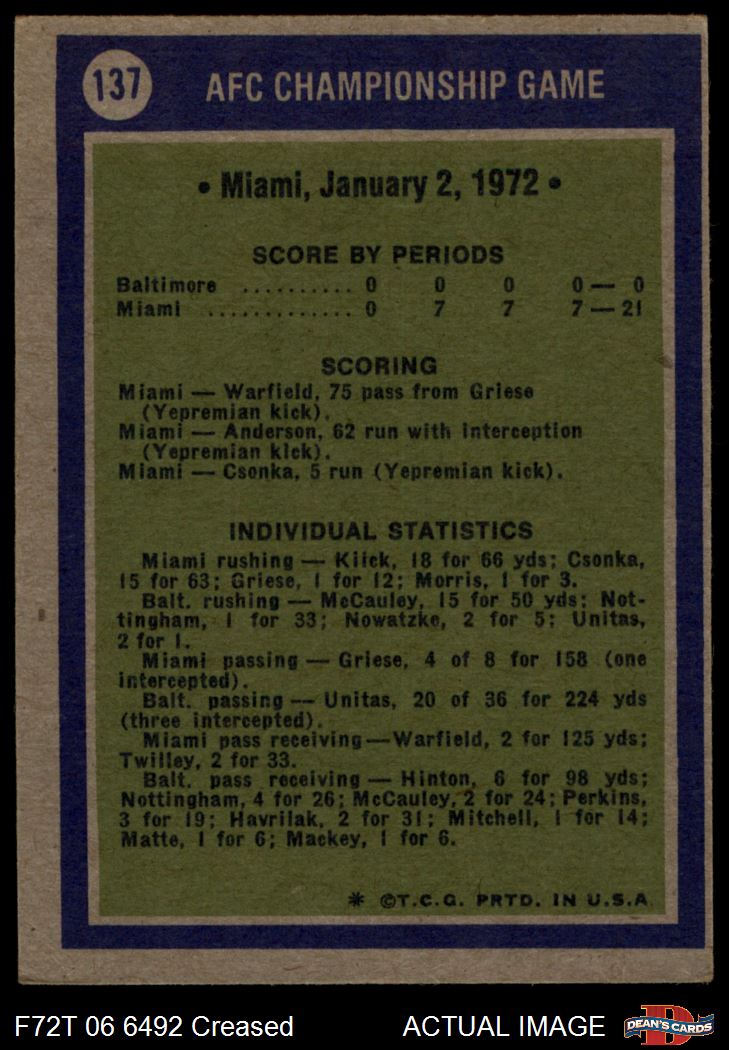 1972 Topps #137 Johnny Unitas / Manny Fernandez AFC Championship Front Thumbnail