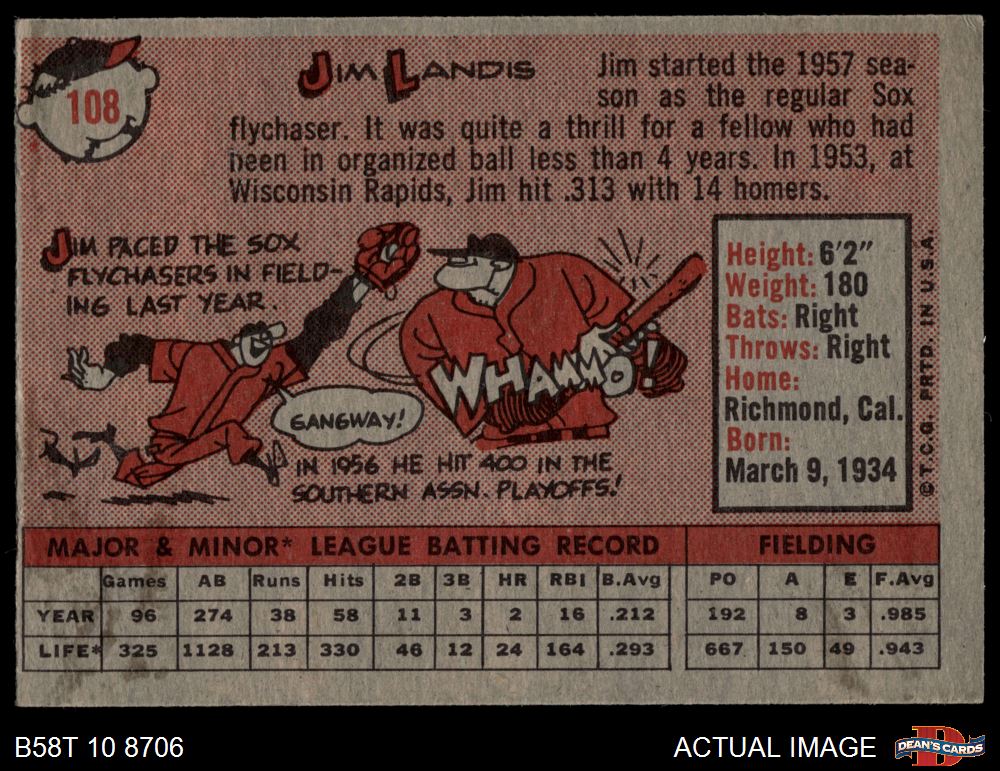 1958 Topps #108 WT Jim Landis