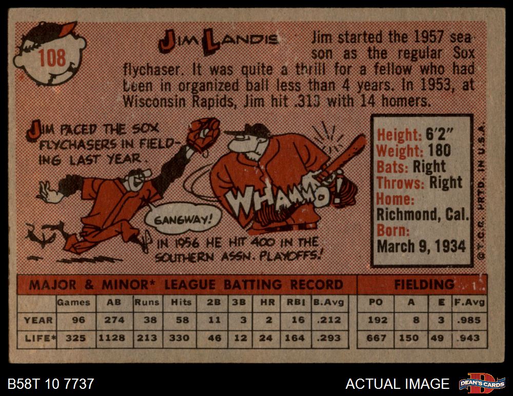 1958 Topps #108 WT Jim Landis 2 - GOOD