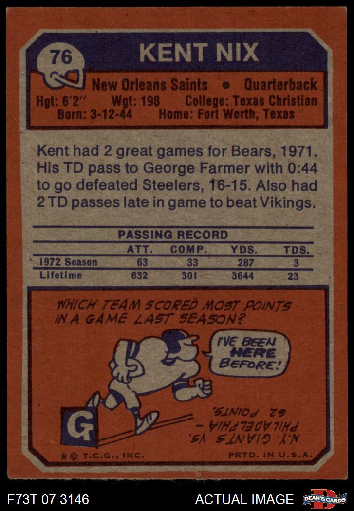 1973 Topps Football Cards (11,997 available)1973 Topps Saints (632 available)