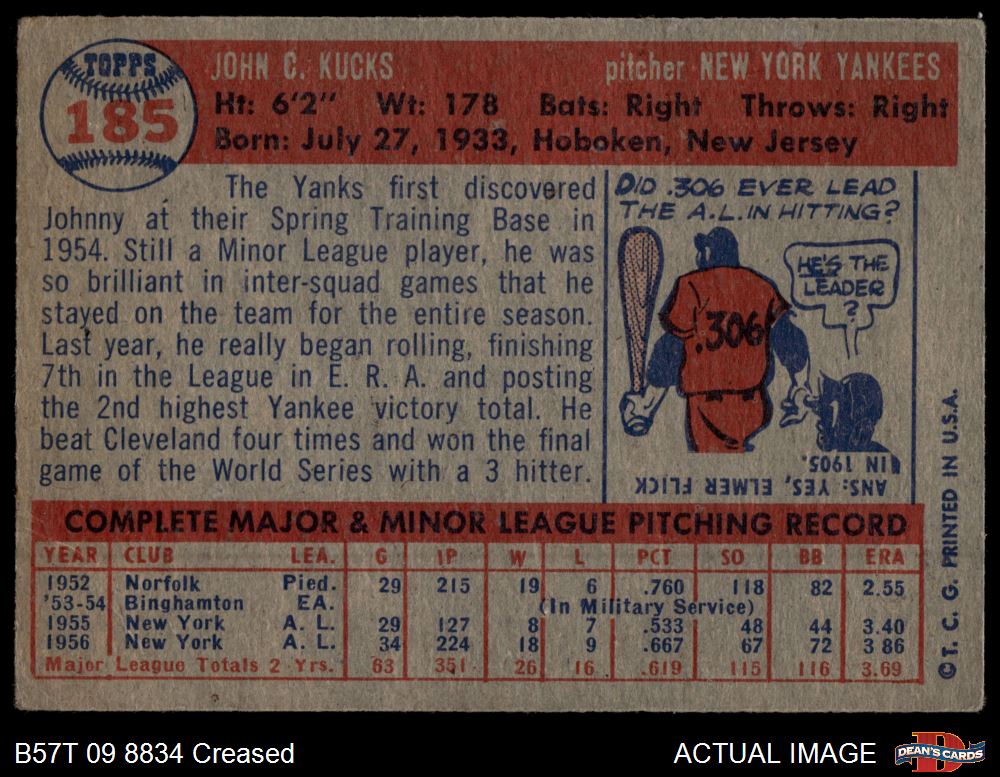1957 Topps #185 Johnny Kucks Front Thumbnail