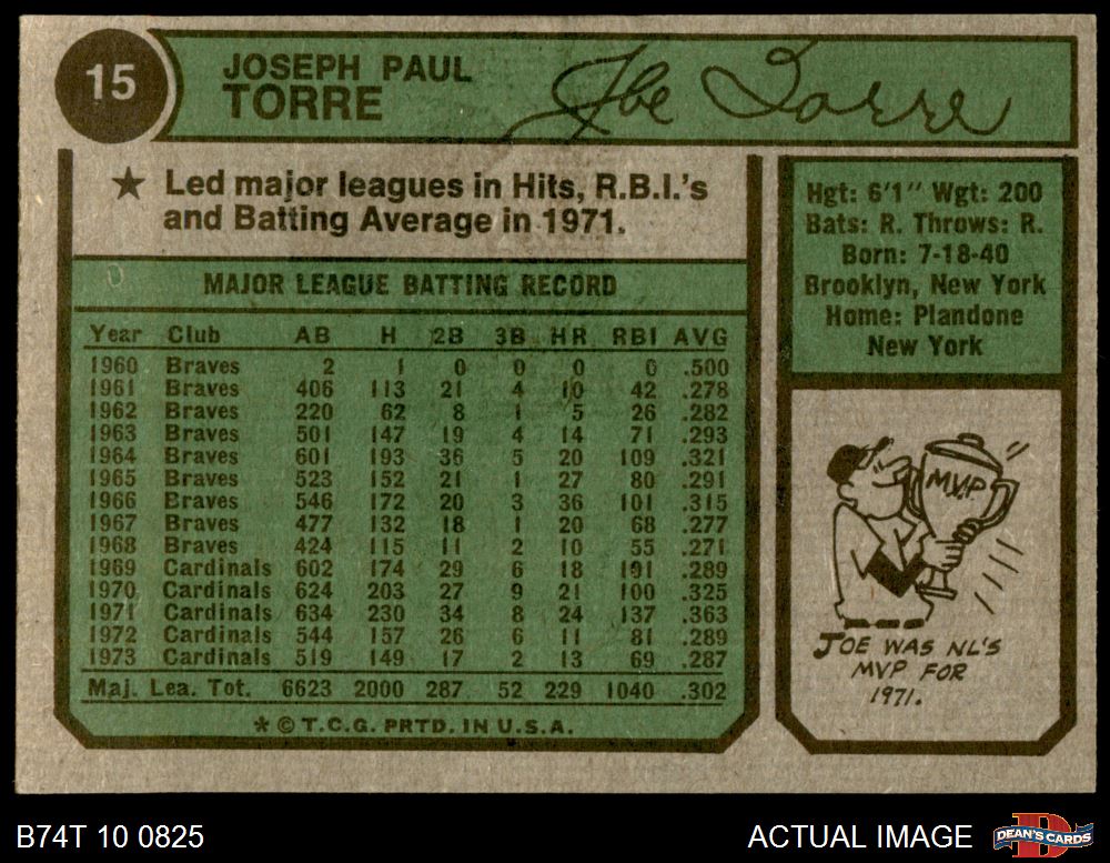 1974 Topps #15 Joe Torre