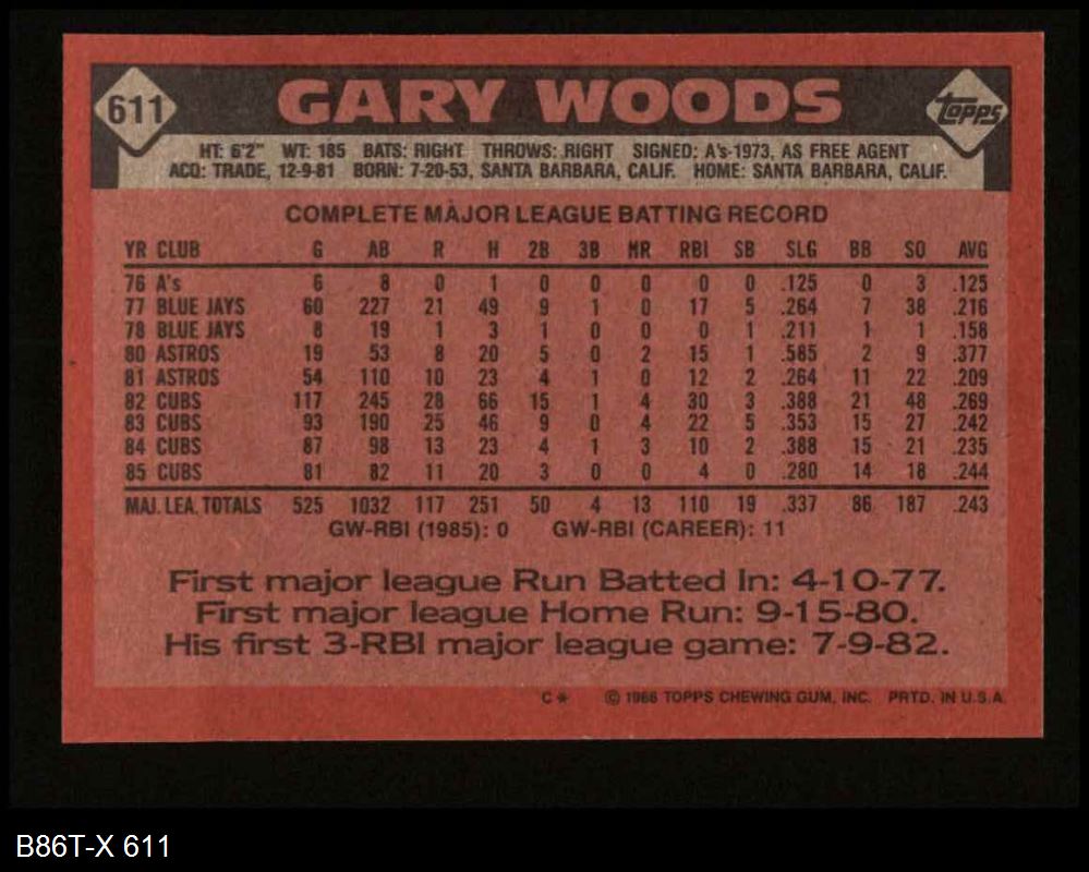 1986 Topps Baseball Cards (6,194 available)1986 Topps Cubs (301 available)