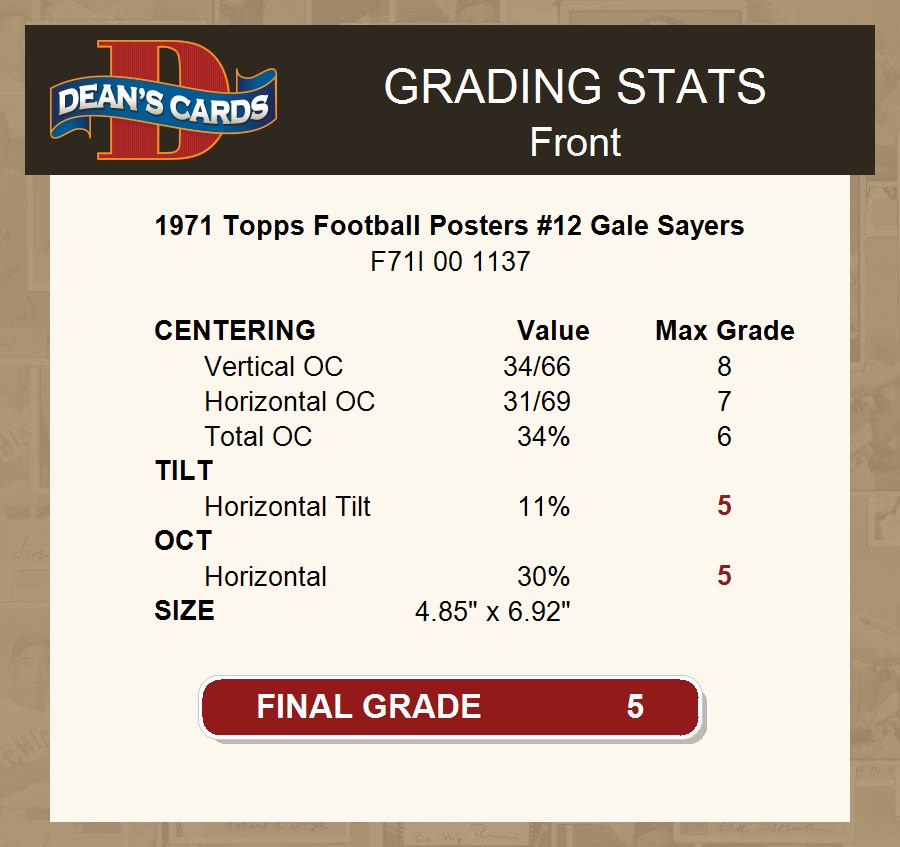 1971 Topps Football Posters #12 Gale Sayers 5 - EX