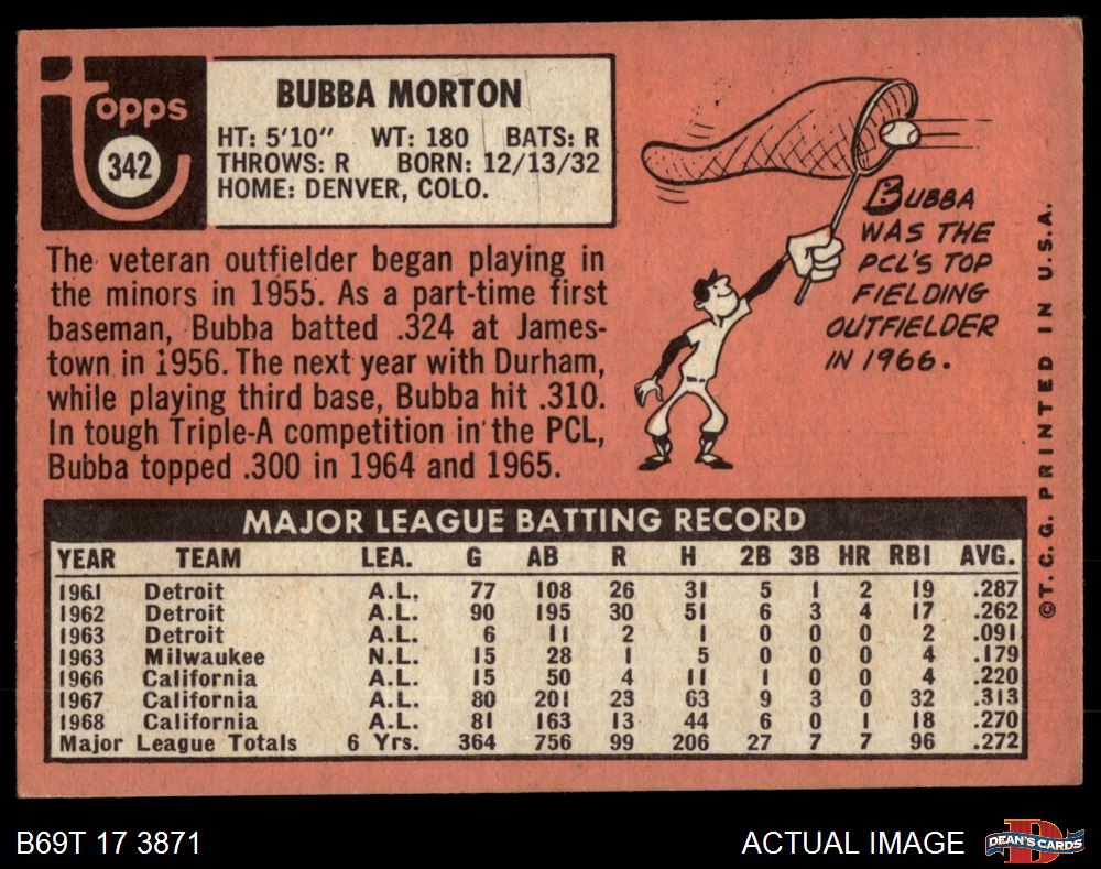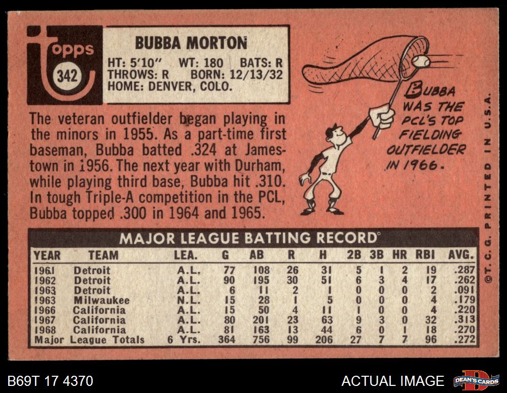 1969 Topps #342 Bubba Morton 4 - VG/EX