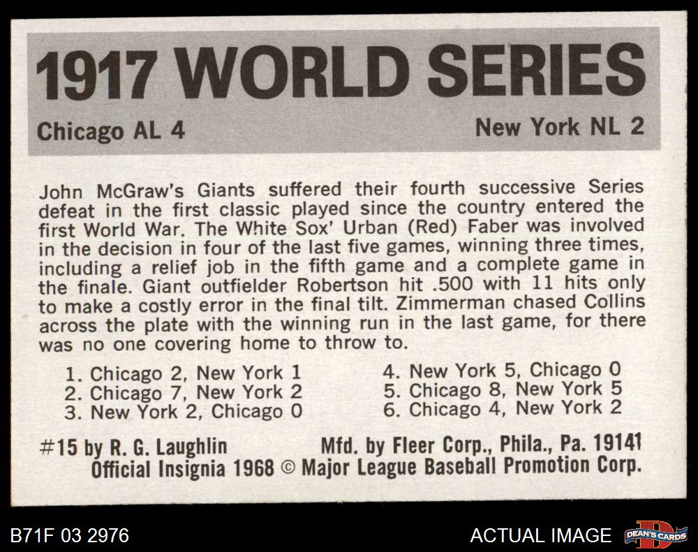 1971 Fleer World Series #15 Red Faber 1917 White Sox / Giants 6.5 - EX/MT+