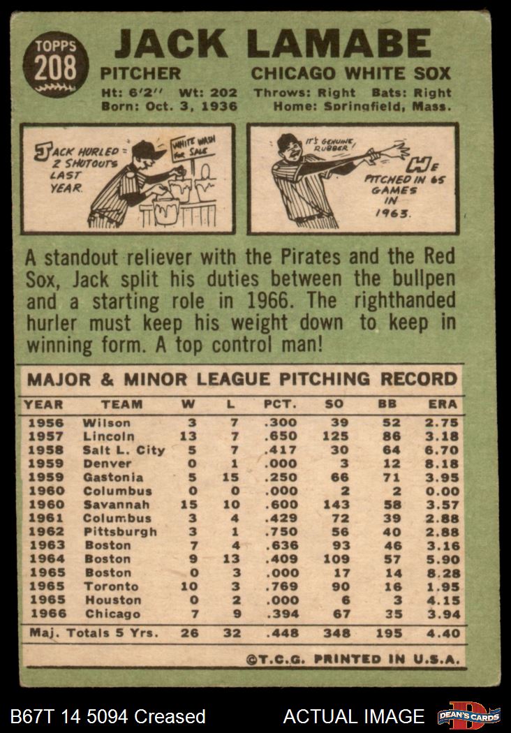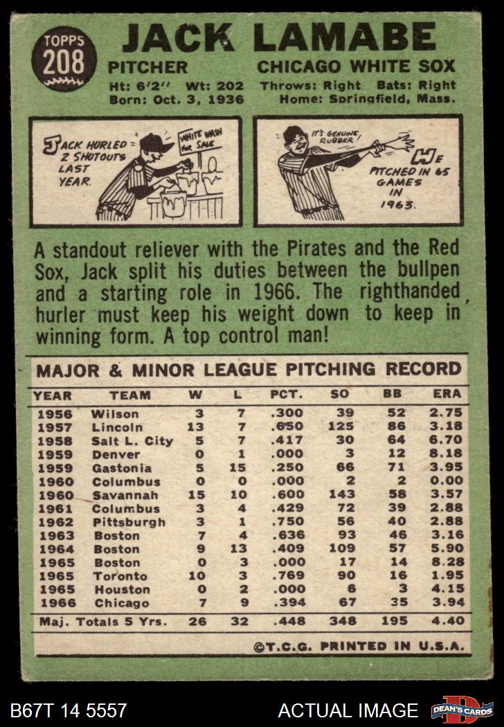 1967 Topps #208 Jack Lamabe 2 - GOOD