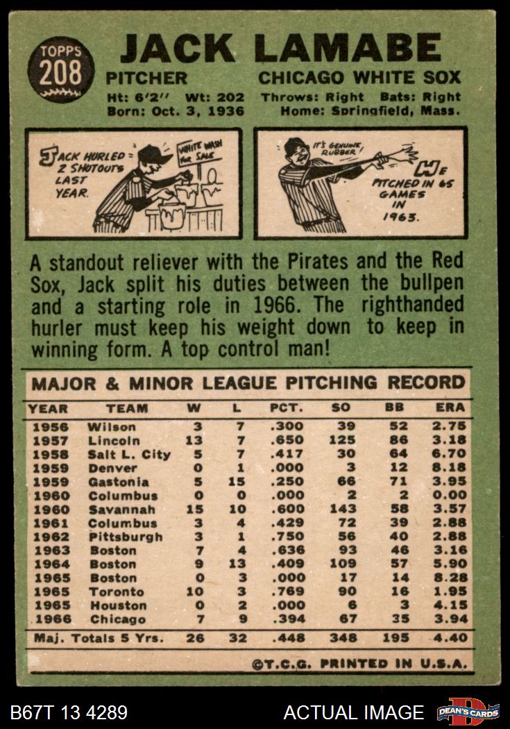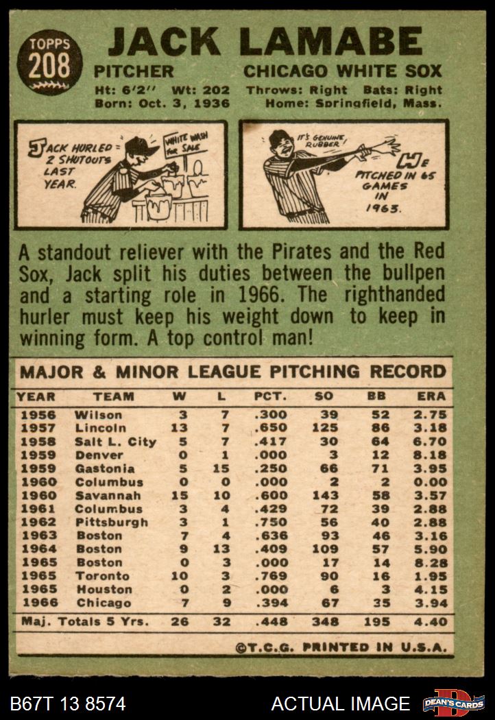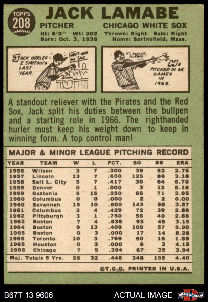 1967 Topps #208 Jack Lamabe 4 - VG/EX