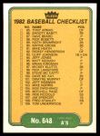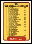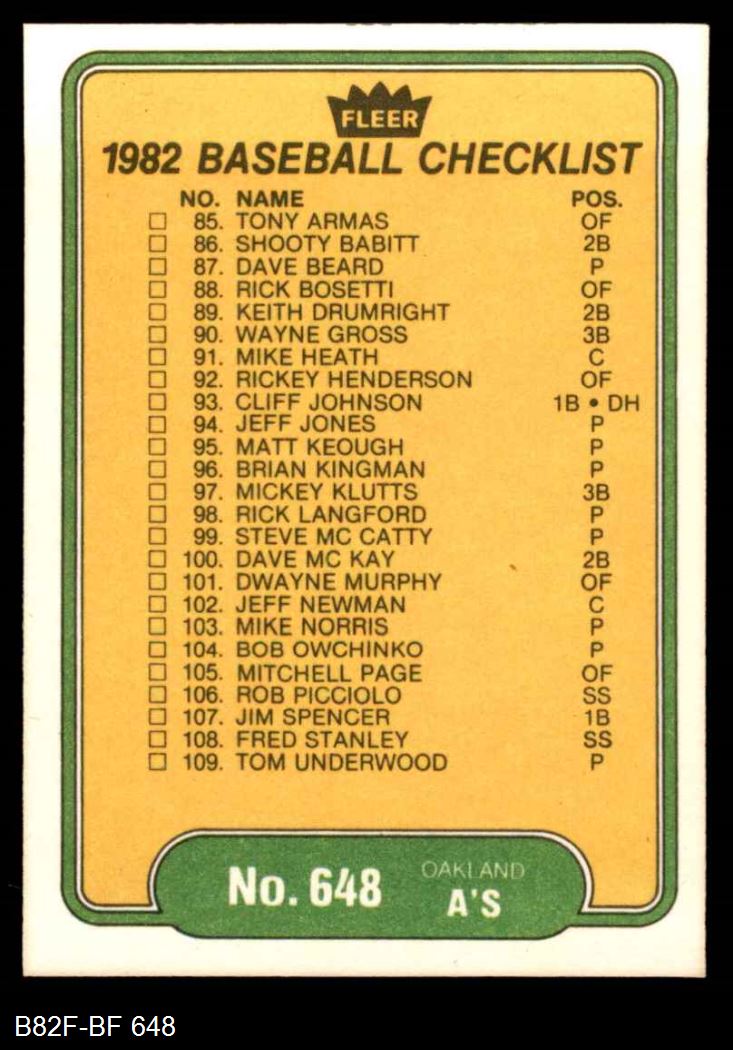 1982 Fleer #648 A's / Reds Checklist 8 - NM/MT