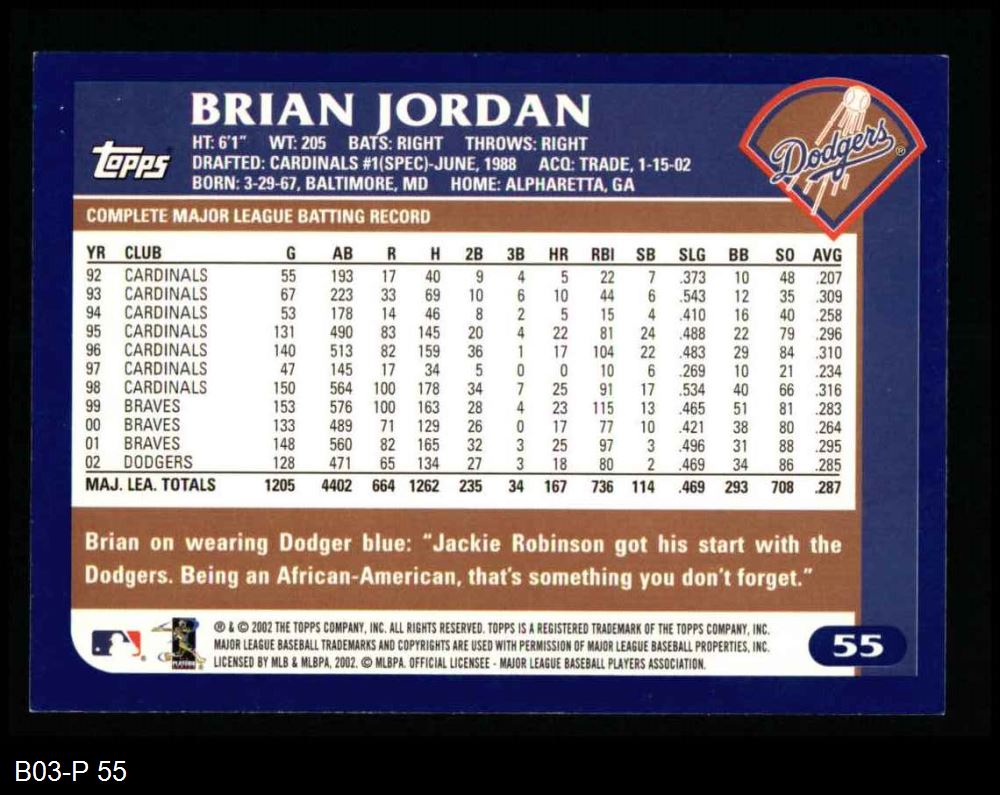 2003 Topps #55 Brian Jordan 8 - NM/MT