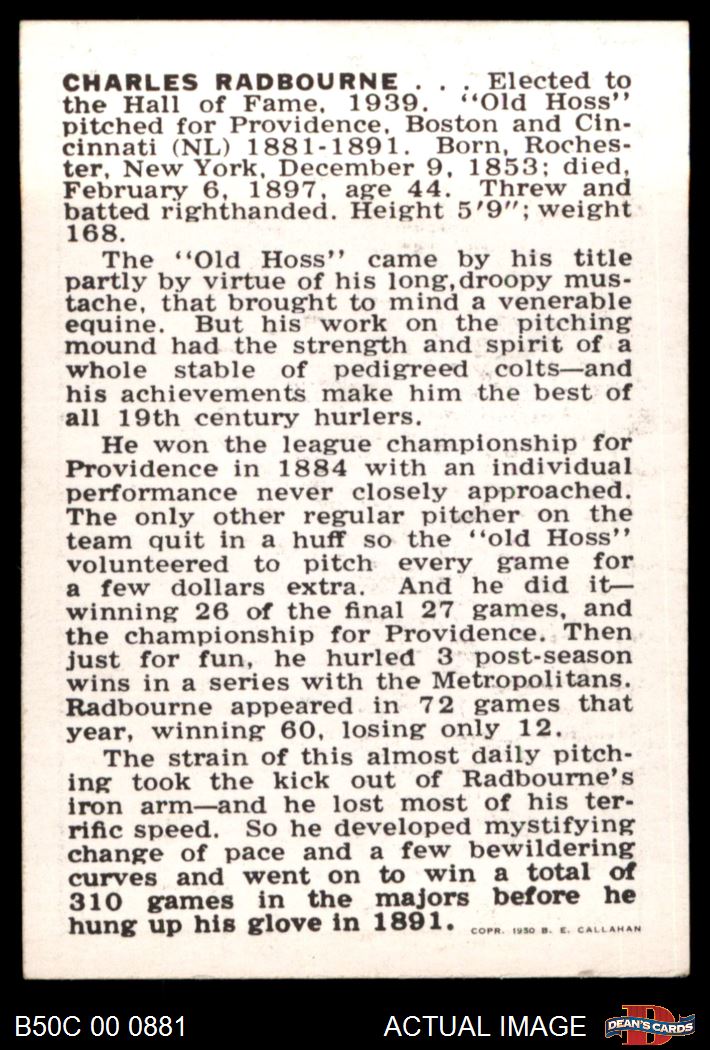 1950 Callahan Hall of Fame Charles Radbourne 7 - NM