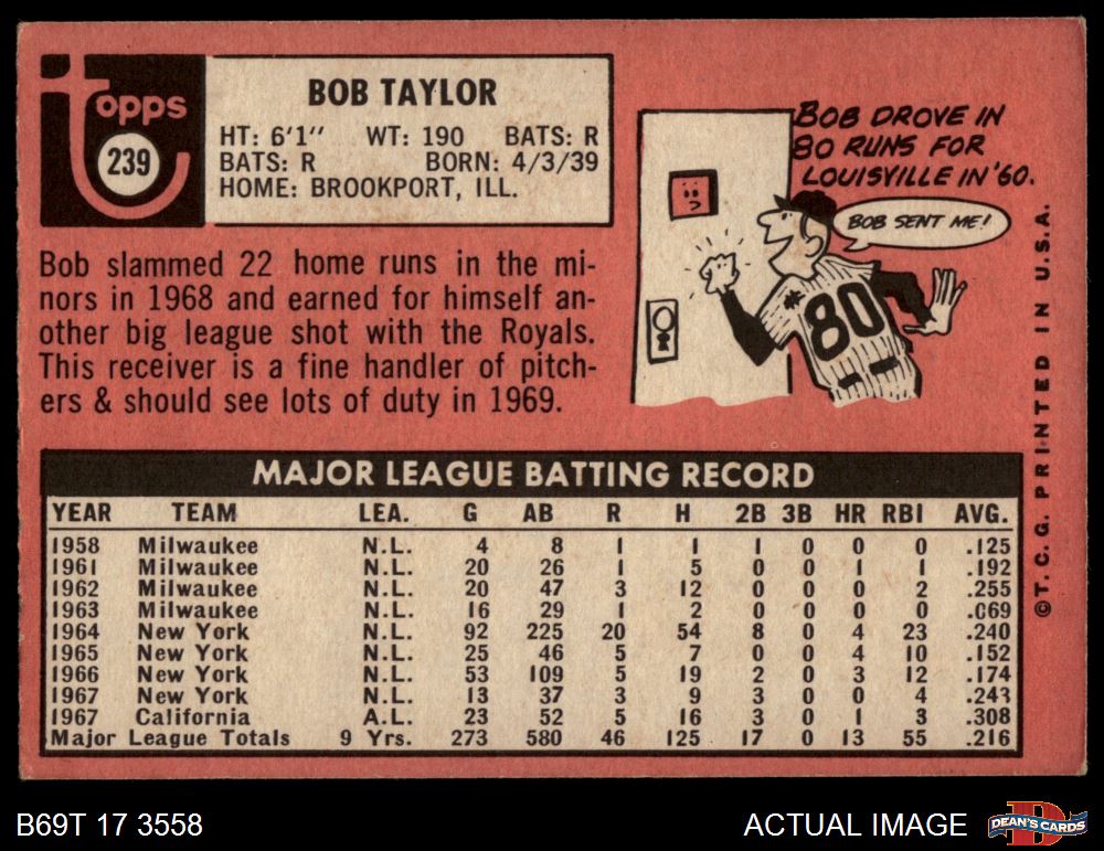 1969 Topps #239 Bob Taylor 3 - VG