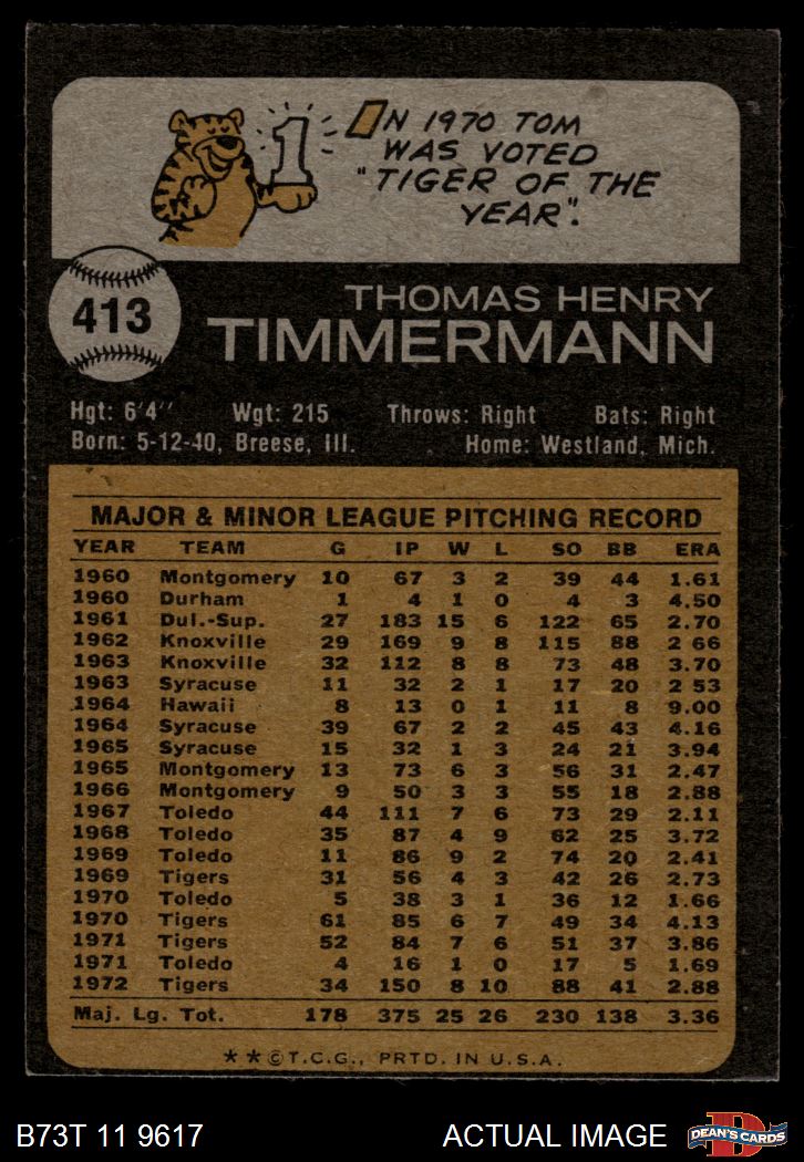 1973 Topps #413 Tom Timmermann 5 - EX