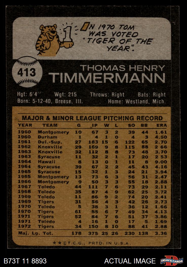 1973 Topps #413 Tom Timmermann 6 - EX/MT