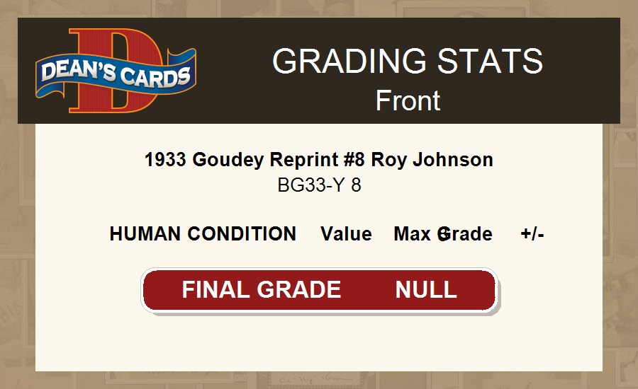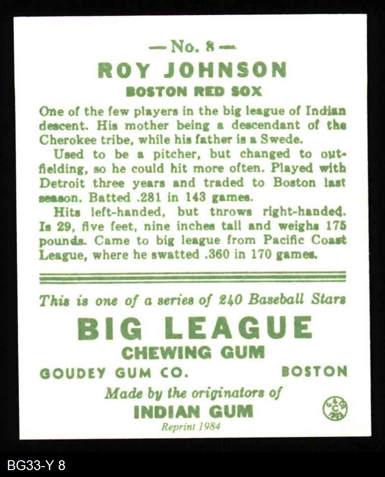 1933 Goudey Reprint #8 Roy Johnson
