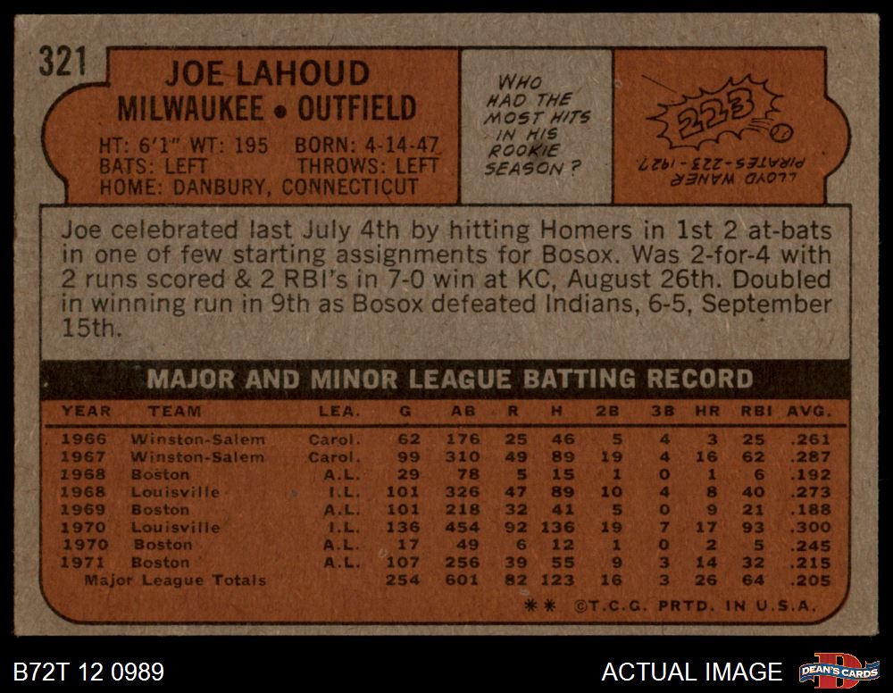 1972 Topps #321 Joe Lahoud