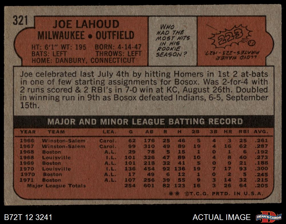 1972 Topps #321 Joe Lahoud 2 - GOOD