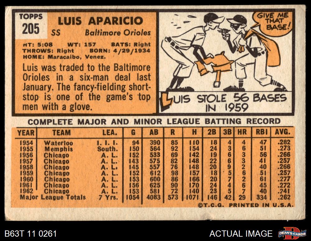 1963 Topps #205 Luis Aparicio