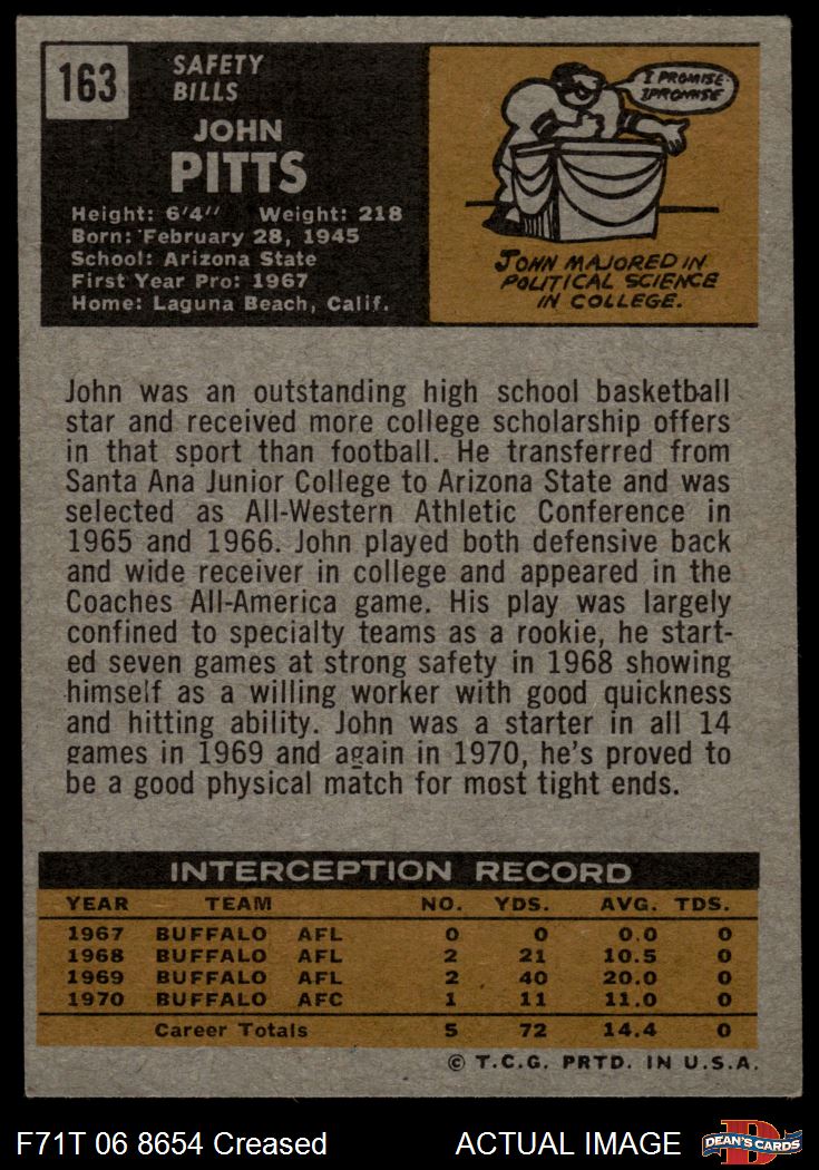 1971 Topps #163 John Pitts