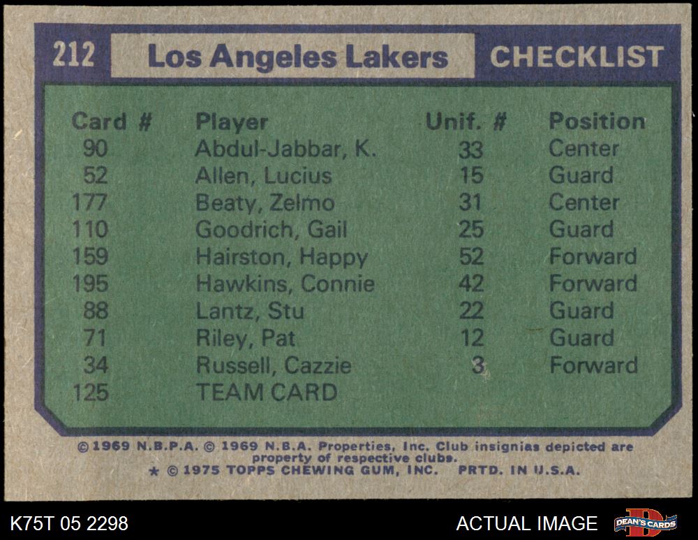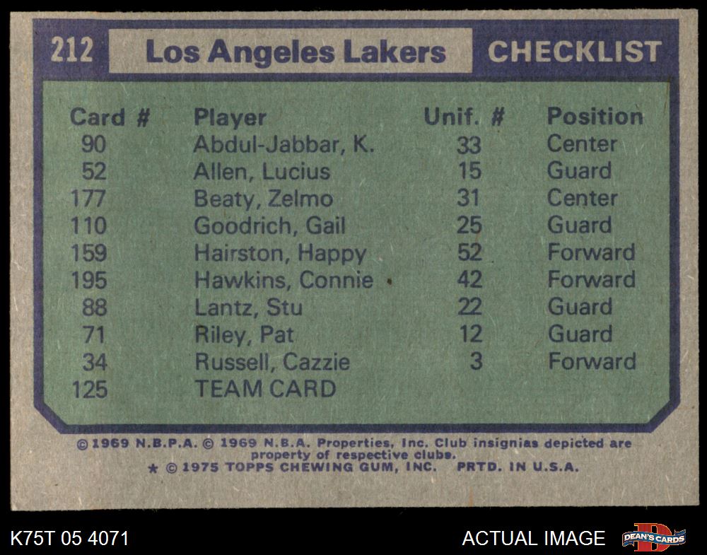 1975 Topps #212 Los Angeles Lakers 5 - EX