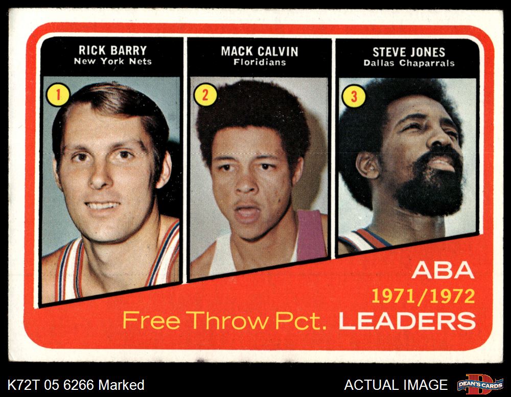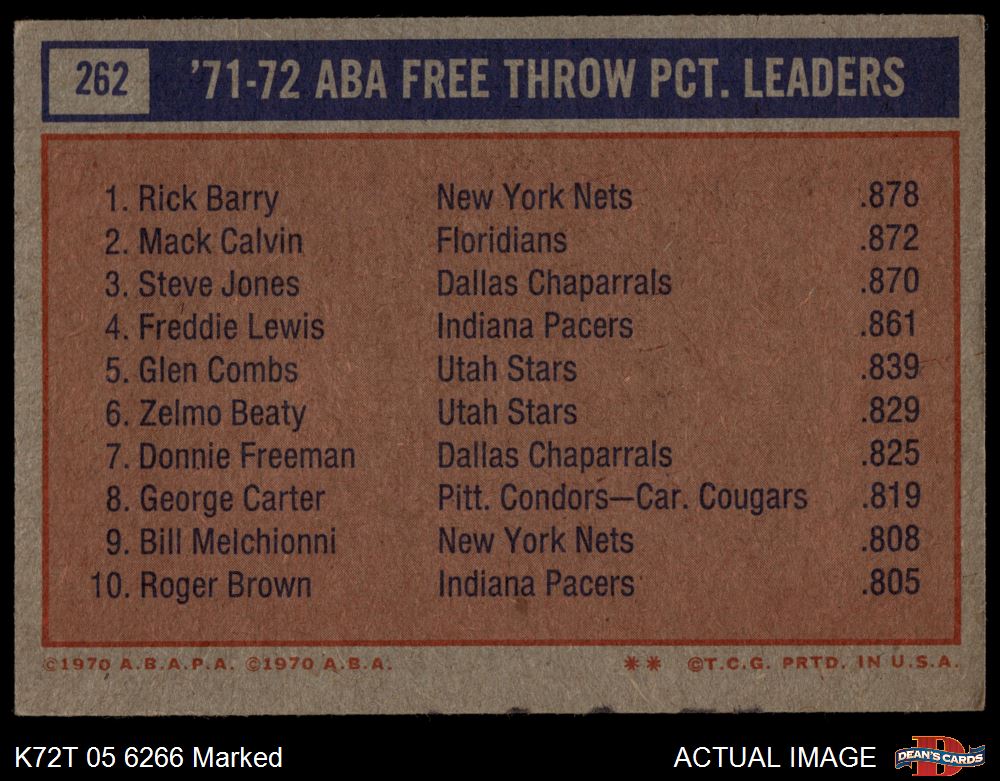 1972 Topps #262 - Steve Jones / Mack Calvin / Rick Barry ABA Free Throw Leaders 1.5 - FAIR