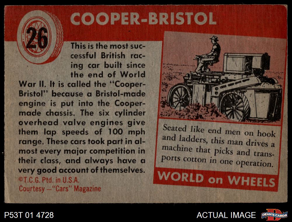 1954 Topps World on Wheels #26 Cooper-Bristol 4 - VG/EX