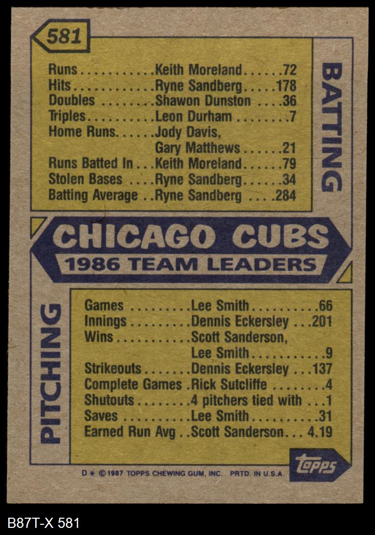 1987 Topps #581 Cubs Leaders