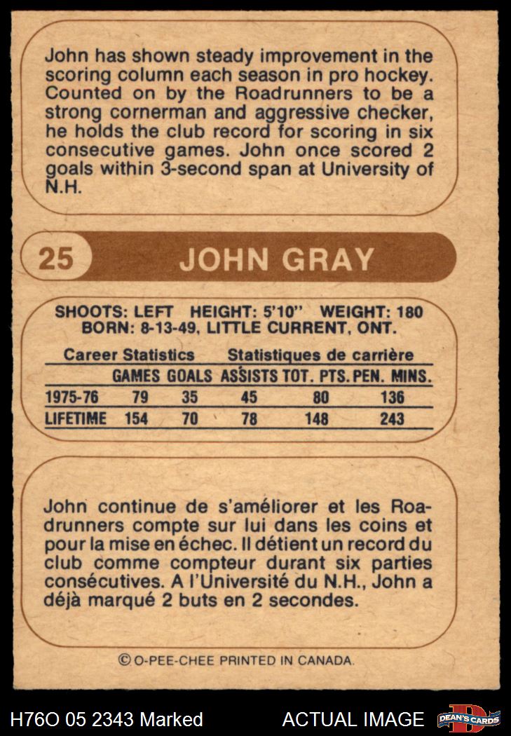 1976 O-Pee-Chee WHA #25 John Gray Front Thumbnail