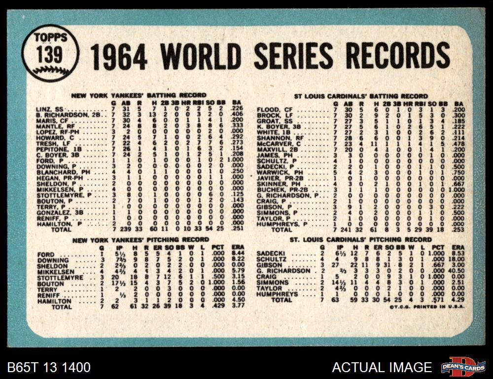 1965 Topps #139 1964 World Series - Summary - The Cards Celebrate 4 - VG/EX
