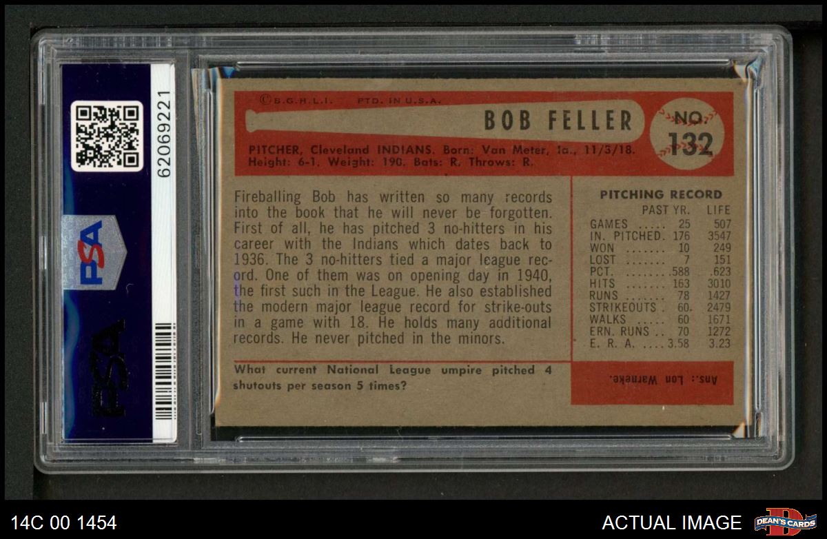 1954 Bowman #132 Bob Feller