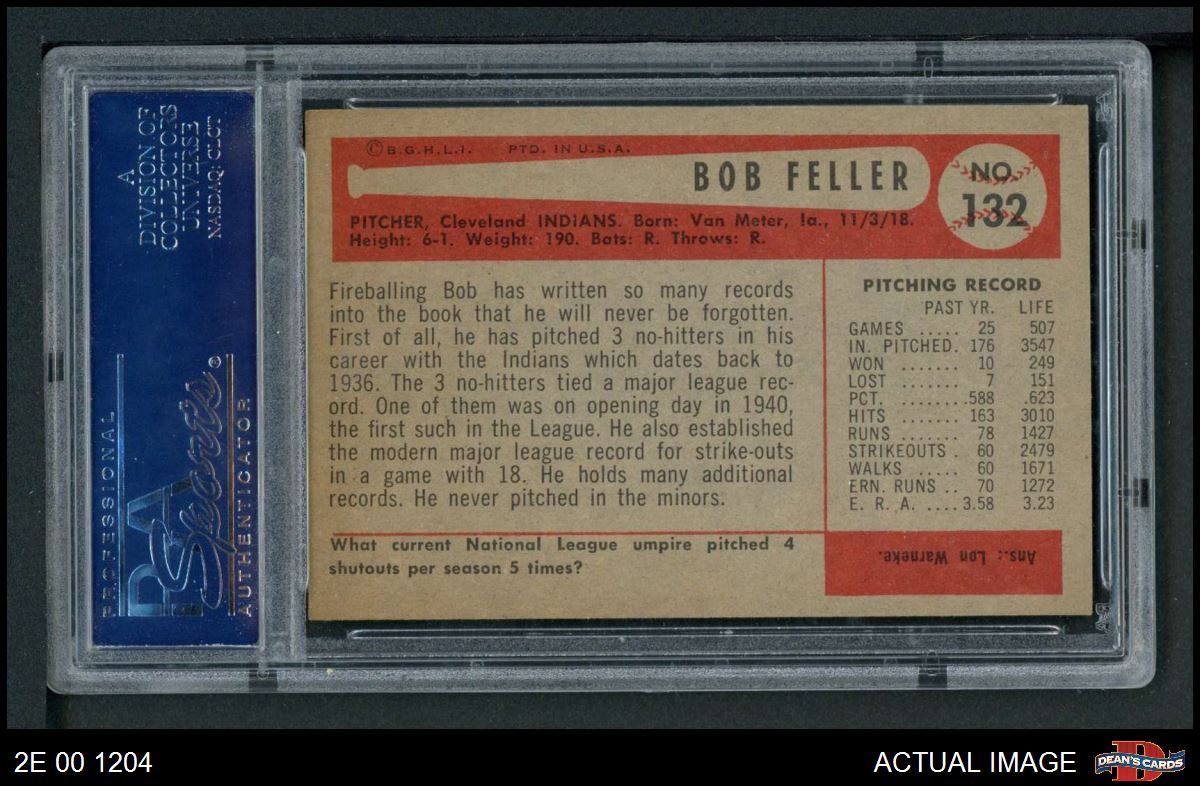 1954 Bowman #132 Bob Feller PSA 6 - EX/MT