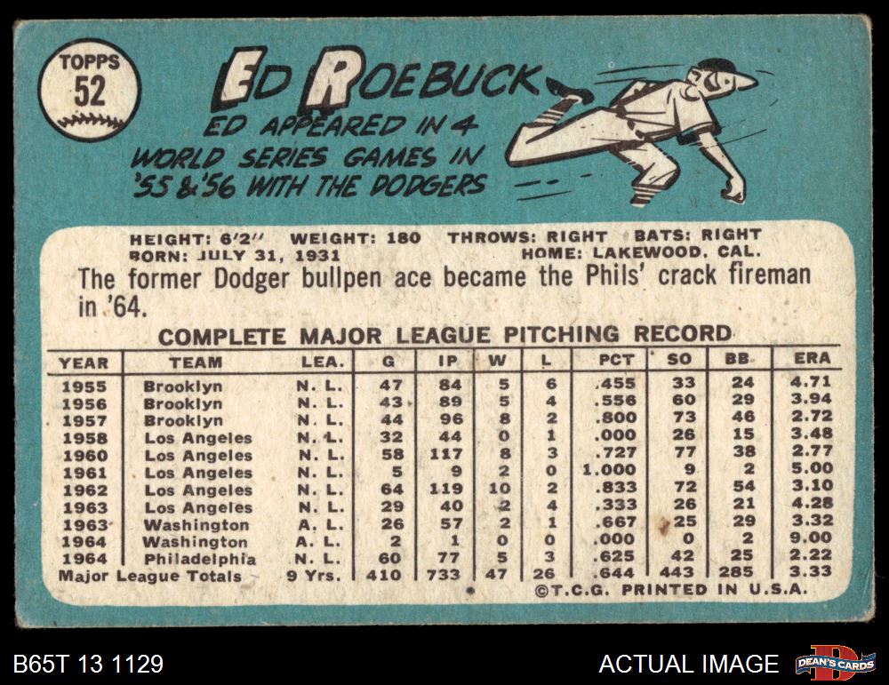1965 Topps #52 Ed Roebuck 1.5 - FAIR