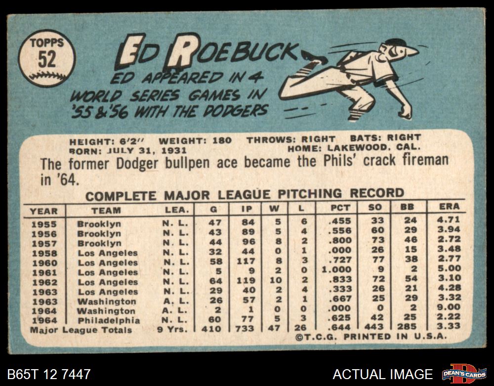 1965 Topps #52 Ed Roebuck 2 - GOOD