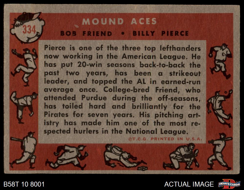 1958 Topps #334 - Bill Pierce / Bob Friend Mound Aces 3.5 - VG+