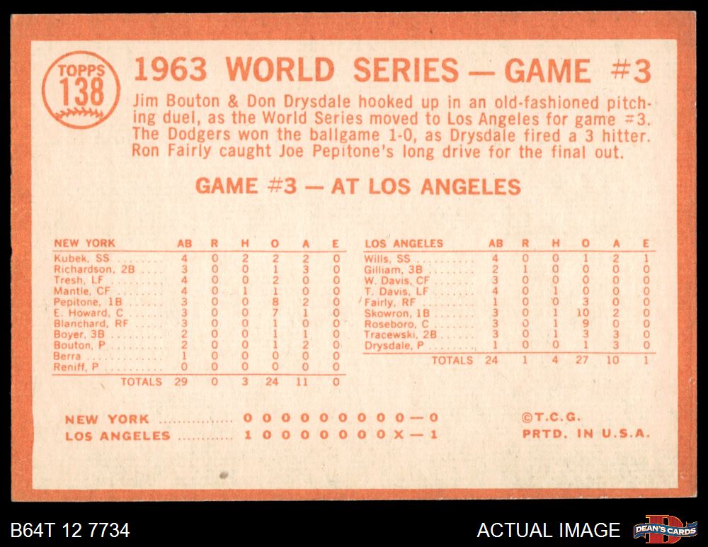 1964 Topps #138 1963 World Series - Game #3 - L.A. Takes 3rd Straight - Ron Fairly 7 - NM