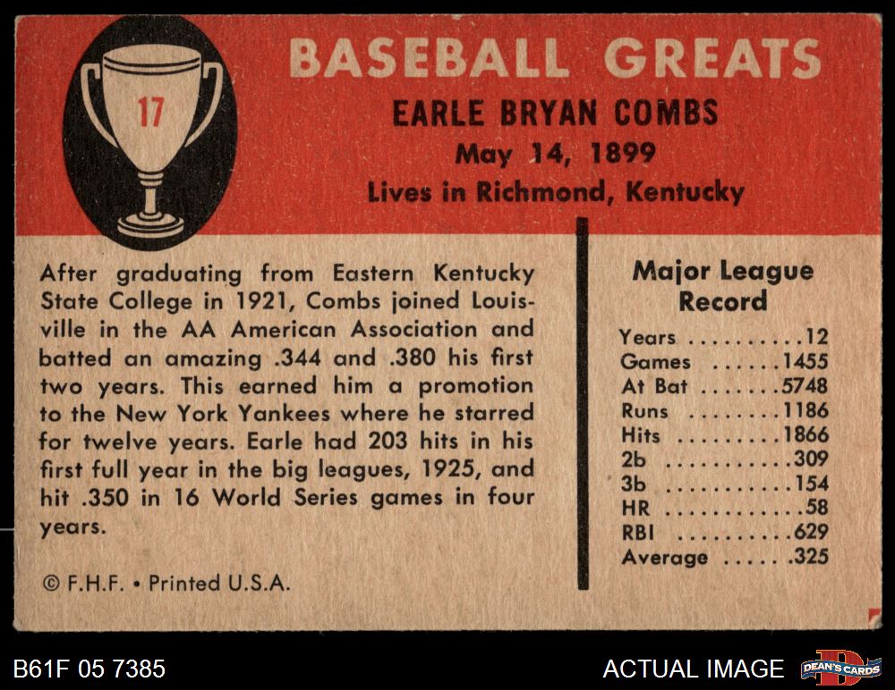 1961 Fleer #17 Earl Coombs Combs 4 - VG/EX