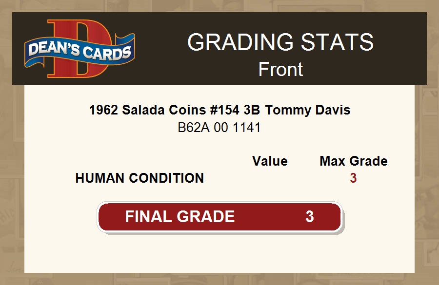 1962 Salada Coins #154 3B Tommy Davis 3 - VG