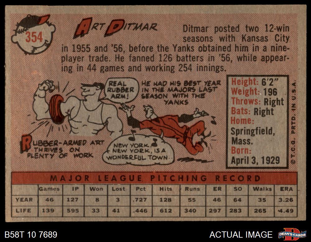 1958 Topps #354 Art Ditmar 6 - EX/MT