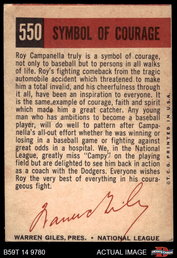 1959 Topps #550 - Roy Campanella Symbol of Courage 2 - GOOD