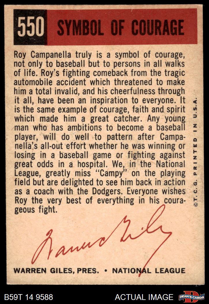 1959 Topps #550 - Roy Campanella Symbol of Courage 4 - VG/EX