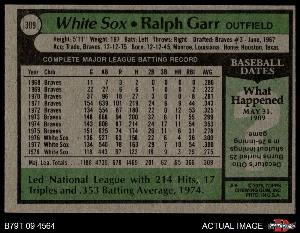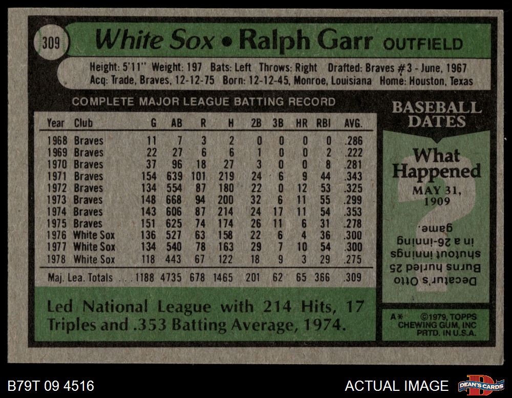 1979 Topps #309 Ralph Garr 4 - VG/EX