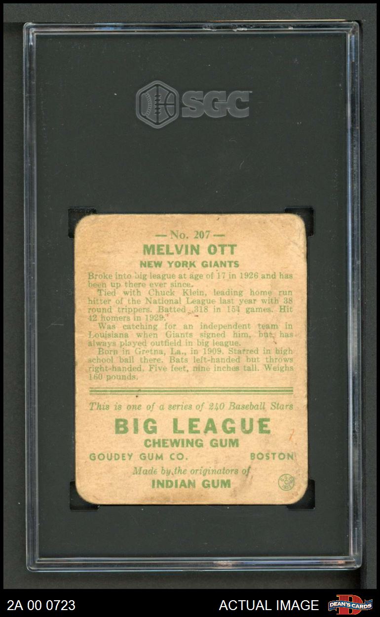 1933 Goudey #207 Mel Ott SGC 1 - POOR