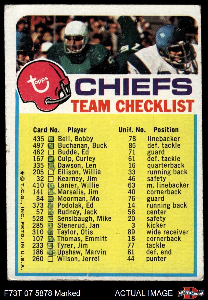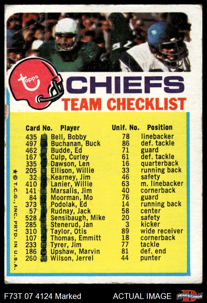 1973 Topps Football Cards (11,995 available)1973 Topps Checklist Chiefs (11 available)