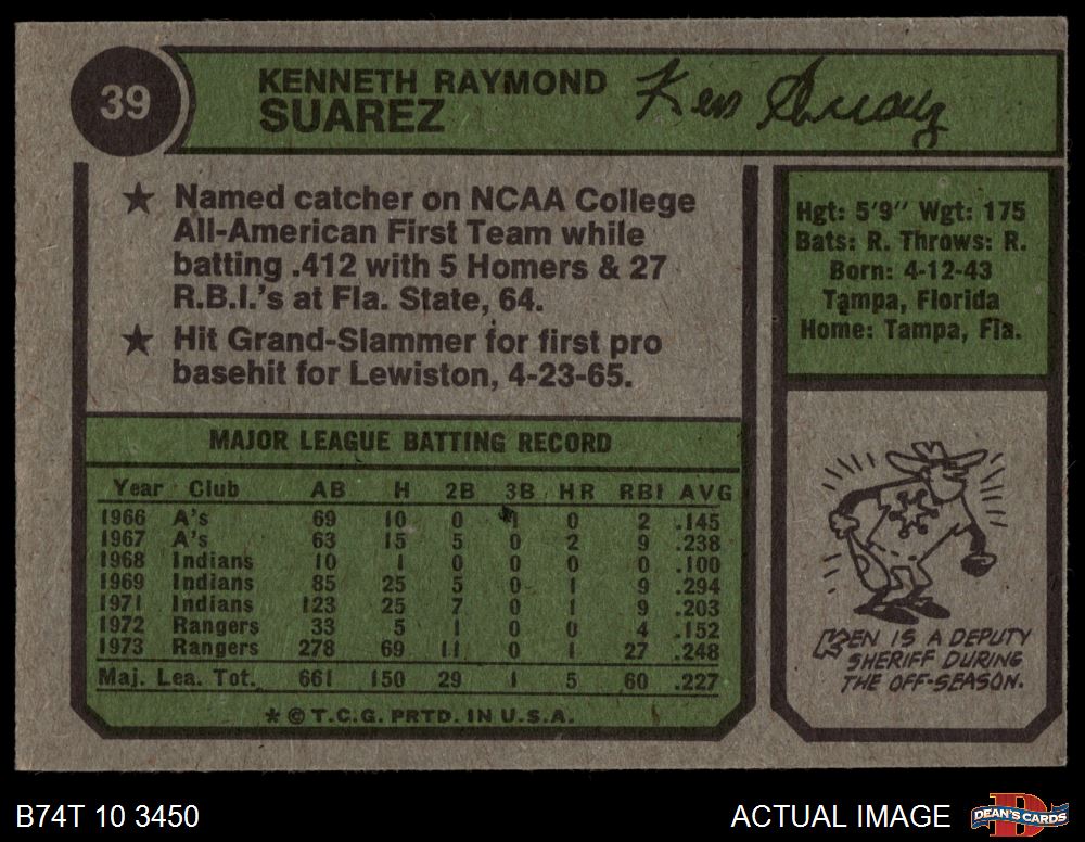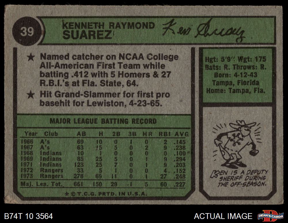 1974 Topps #39 Ken Suarez