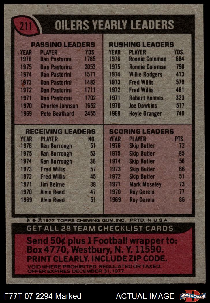 1977 Topps #211 Oilers Team Checklist 1.5 - FAIR