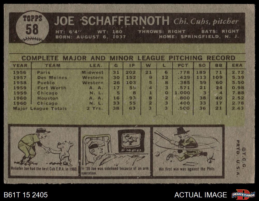 1961 Topps #58 Joe Schaffernoth 3 - VG