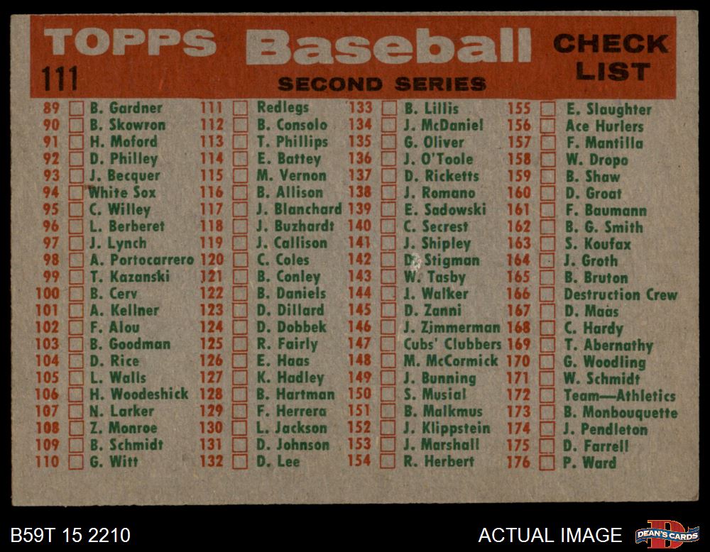 1959 Topps #111  Reds Team Checklist Front Thumbnail