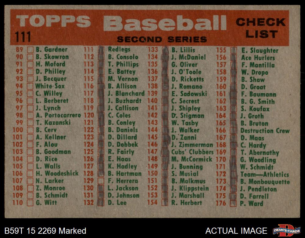 1959 Topps #111 Reds Team Checklist 1.5 - FAIR