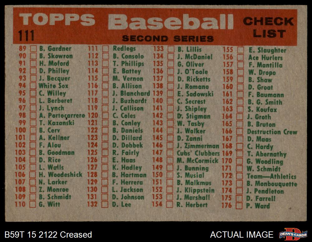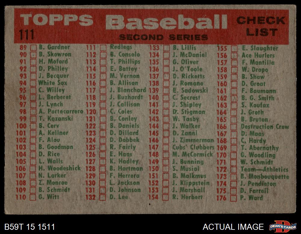 1959 Topps #111 Reds Team Checklist 2 - GOOD